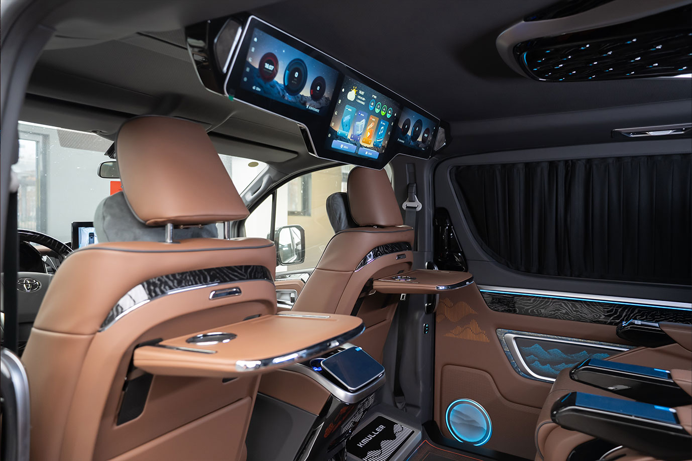 后舱三联屏娱乐系统,满足多人不同需求(游戏/娱乐/K歌/会议);