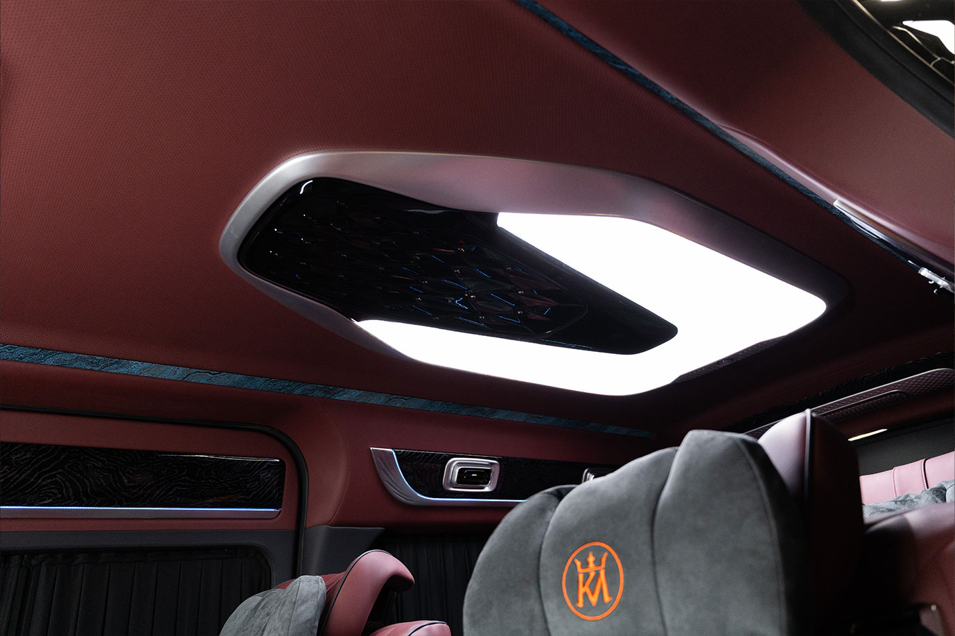 29颗水晶镶嵌龙首顶灯,汇聚八方能量,如临浩淼星空;256色流水氛围灯,定制JBL全景式音响系统(18扬声器,7.1.2声道)